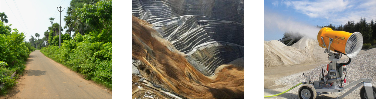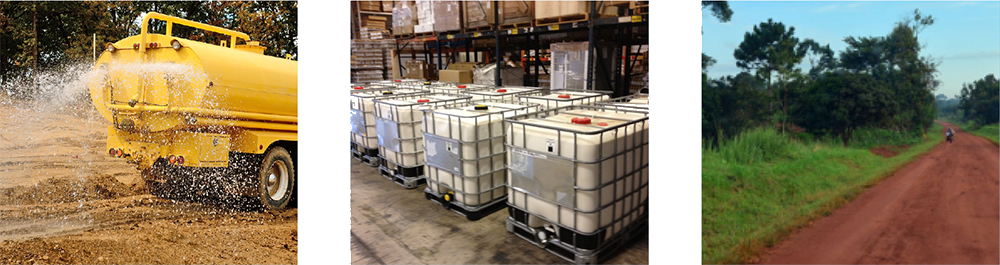 Dépoussiérage et recouvrement : Zone humide avec un mélange de SOIL FUSION et d'eau. La poussière sera complètement diminuée et de l'eau propre coulera en cas de pluie.